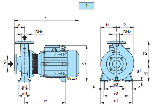 Двигун - насосний агрегат. Насоси серії N, N4 з'єднані з електродвигуном стандартного типу конструкції типу B3 (IEC 72). Клас енергозбереження EFF2 (EFF1 з підвищеним ККД під замовлення), захисний пристрій типу IP 55, трифазний, 400 Ст., 50 Гц, на опорній плиті з еластичної сполучної частиною, що має захисний кожух.