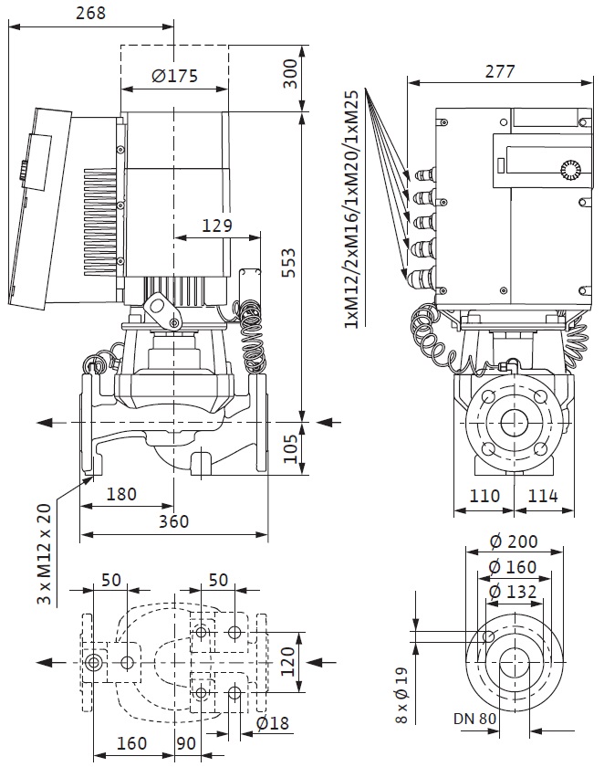 Wilo-Stratos GIGA - Високоефективний Inline насос з електронно-двигун двигуном та електронним регулюванням частоти обертання з сухим ротором. Виконання як одноступеневий відцентровий насос низького тиску з фланцевим приєднанням ковзним торцевим ущільненням. За допомогою частотного перетворювача вдається досягати постійних гідравлічних параметрів насоса в залежності від умов споживання рідини в кожен момент часу.