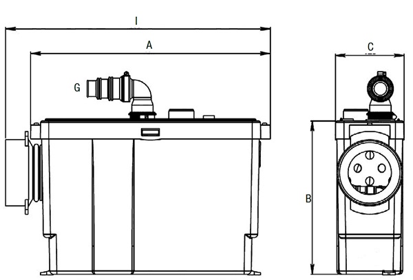 Основні матеріали: Гідравлічний корпус, робоче колесо, верхня кришка і грати на всмоктуванні – технополімер; герметичний кожух двигуна, вал і кріпильні гвинти – нержавіюча сталь AISI 316; сальникові ущільнення валу – NRB. Потужний безшумний двигун, насос і подрібнювальне пристрій виконані з нержавіючої сталі. Завдяки системі самоочищення насоса станція практично не вимагає обслуговування. Проста в установці, станція обладнана з'єднувальним патрубком для приєднання душової кабінки з висотою зливу 12 див. Розташований збоку посилений патрубок зі вбудованим в нього клапаном неповернутого типу дозволяє знімати кришку без демонтажу трубопроводу на нагнітанні.