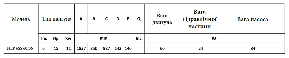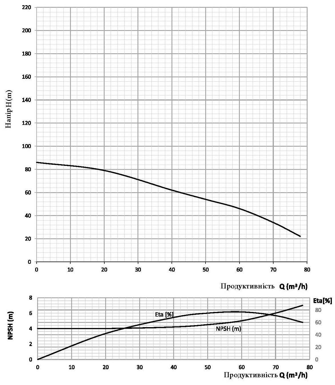 Гідравлічні робочі характеристики були взяті з водою при температурі 15 ° C, при атмосферному тиску 1 бар і питомій вазі 1 гр / см3