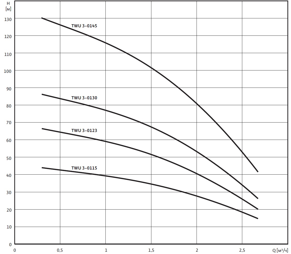 Wilo-Sub TWU 3 – Глибинний багатоступінчастий 3-х дюймовий насос з радіальними робочими колесами в секційному виконанні. Вбудований зворотний клапан. Всі деталі, які контактують з перекачуваним середовищем, виконані з корозійностійких матеріалів. Глибинний насос для вертикального або горизонтального монтажу.
