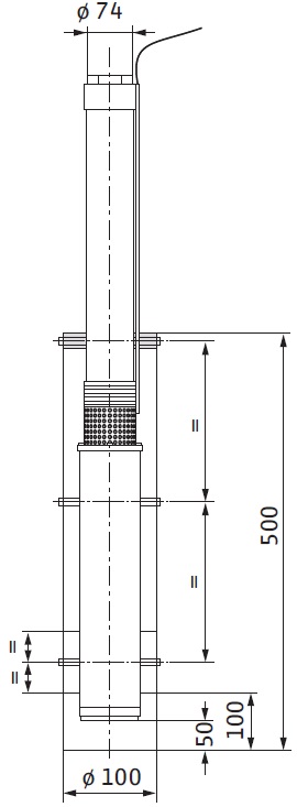 Гідравлічна частина: Глибинний багатоступінчастий насос з радіальними робочими колесами в секційному виконанні. Вбудований зворотний клапан. Всі деталі, які контактують з перекачуваним середовищем, виконані з корозійностійких матеріалів;