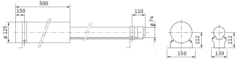 габаритне креслення. D -Горизонтальний з охолоджуючим кожухом  |