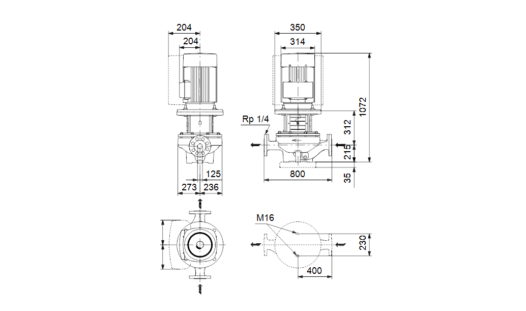 Призначення: Одноступінчаті, одинарні вертикальні відцентрові насоси Grundfos TP типу «ін-лайн» з усмоктувальним і випускними патрубками на одній лінії. Насос має конструкцію вилучення зверху, тобто головну частину (електродвигун, голову насоса і робоче колесо) можна демонтувати для обслуговування чи ремонту в той час, як корпус насоса залишається на трубопроводі. Насос оснащений незбалансованим сильфонным ущільненням. Приєднання до трубопроводу за допомогою фланців. Насос оснащений вентилятором охолодження асинхронного двигуна.