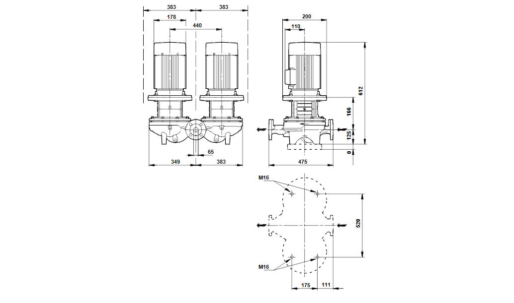 Одноступінчатий здвоєний насос TPD 65-110 / 4 BQBE / BAQE
