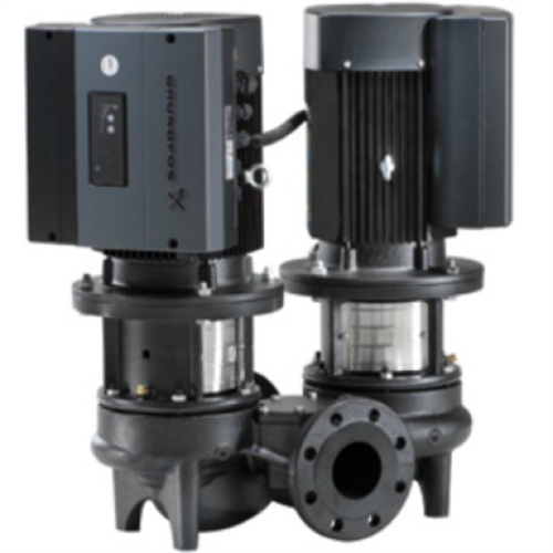 Призначення: Одноступінчаті, здвоєні насоси Grundfos TPED  з усмоктувальним і випускними патрубками на одній лінії, що використовуються в різних областях застосування. Здвоєний вертикальний відцентровий насос типу «ін-лайн» з вбудованим частотним перетворювачем і датчиком перепаду тиску, спроектований з двома паралельними головними частинами. Насос має конструкцію вилучення зверху, тобто головну частину (електродвигун, голову насоса і робоче колесо) можна демонтувати для обслуговування чи ремонту в той час, як корпус насоса залишається на трубопроводі. Кожна насосна частина оснащена синхронним двигуном на постійних магнітах з повітряним охолодженням однакового розміру. Електродвигун включає частотний перетворювач і ПІ-регулятор в клемній коробці. Це забезпечує постійне плавне регулювання частоти обертання електродвигуна, а також можливість коригування робочих характеристик у відповідності з заданими вимогами.