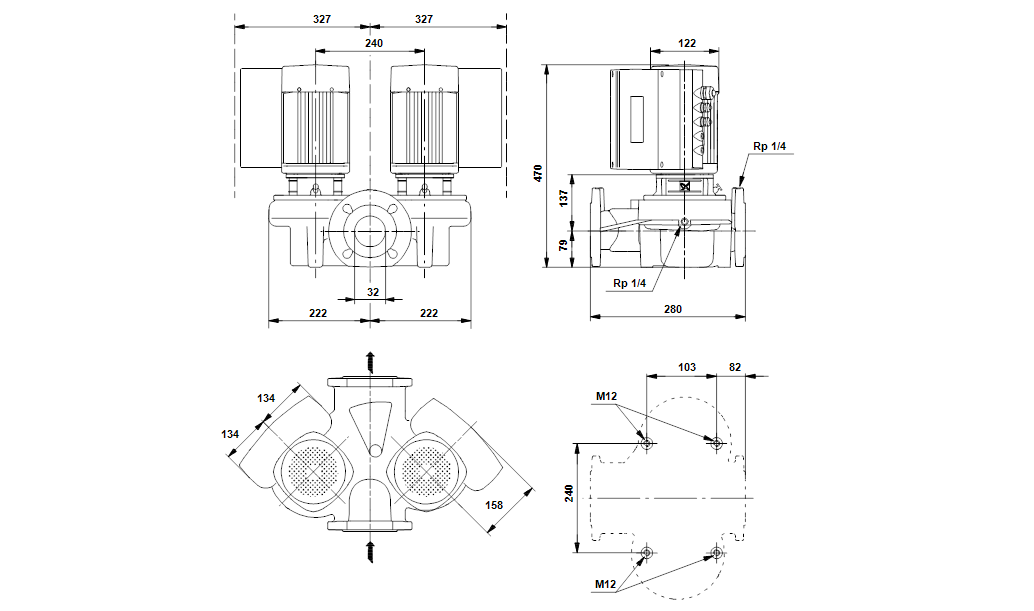 Призначення: Одноступінчаті, здвоєні насоси Grundfos TPED з усмоктувальним і випускними патрубками на одній лінії, що використовуються в різних областях застосування. Здвоєний вертикальний відцентровий насос типу «ін-лайн» з вбудованим частотним перетворювачем і датчиком перепаду тиску, спроектований з двома паралельними головними частинами. Насос має конструкцію вилучення зверху, тобто головну частину (електродвигун, голову насоса і робоче колесо) можна демонтувати для обслуговування чи ремонту в той час, як корпус насоса залишається на трубопроводі. Кожна насосна частина оснащена синхронним двигуном на постійних магнітах з повітряним охолодженням однакового розміру. Електродвигун включає частотний перетворювач і ПІ-регулятор в клемній коробці. Це забезпечує постійне плавне регулювання частоти обертання електродвигуна, а також можливість коригування робочих характеристик у відповідності з заданими вимогами. Насос оснащений датчиком перепаду тиску.
