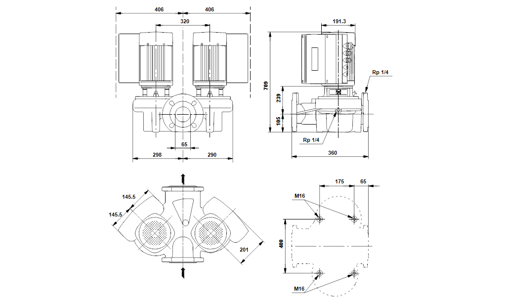 Призначення: Одноступінчаті, здвоєні насоси Grundfos TPED з усмоктувальним і випускними патрубками на одній лінії, що використовуються в різних областях застосування. Здвоєний вертикальний відцентровий насос типу «ін-лайн» з вбудованим частотним перетворювачем і датчиком перепаду тиску, спроектований з двома паралельними головними частинами. Насос має конструкцію вилучення зверху, тобто головну частину (електродвигун, голову насоса і робоче колесо) можна демонтувати для обслуговування чи ремонту в той час, як корпус насоса залишається на трубопроводі. Кожна насосна частина оснащена синхронним двигуном на постійних магнітах з повітряним охолодженням однакового розміру. Електродвигун включає частотний перетворювач і ПІ-регулятор в клемній коробці. Це забезпечує постійне плавне регулювання частоти обертання електродвигуна, а також можливість коригування робочих характеристик у відповідності з заданими вимогами. Насос оснащений датчиком перепаду тиску.