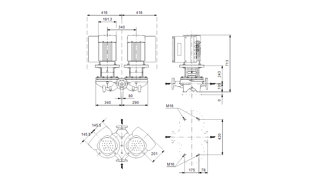 Застосування: Дані вертикальні, здвоенные насоси використовуються в комерційних будівлях в системах кондиціонування повітря та опалення, де необхідний контроль тиску. В залежності від застосування насоси є економічними, зручними в експлуатації і забезпечують оптимізацію технологічних процесів.