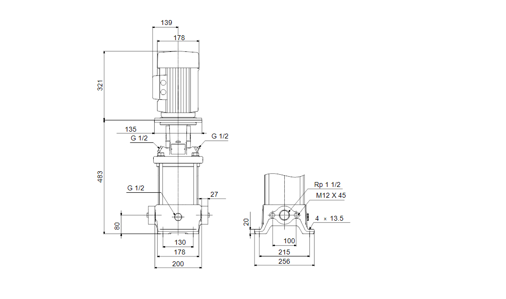 • Насоси CR, CRN поставляються зі стандартним асинхронним двополюсним електродвигун закритого типу з вентиляторним охолодженням. Основні розміри електродвигуна  сответствуют стандарту EN;