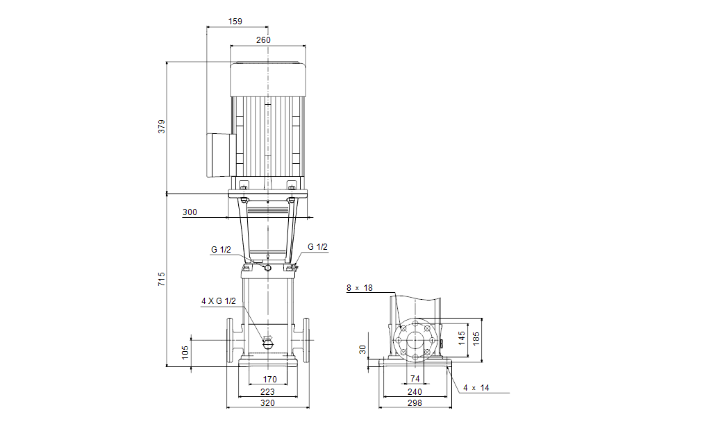 CR - Являє собою вертикальний багатоступінчастий відцентровий насос з нормальним всмоктуванням зі стандартним електродвигуном. Стандартна серія насосів CR може бути виконана з чотирьох матеріалів: чавун, дві марки нержавіючої сталі і титан. Існує одинадцять типорозмірів, що дозволяють забезпечити тиск аж до 50 бар, і кілька типів торцевих ущільнень, типів еластомерів і напруги живлення.