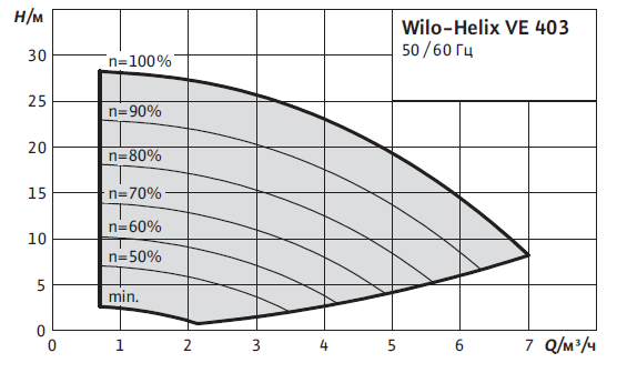 Wilo Helix VE - Зовнішній багатоступінчастий відцентровий нормальновсмоктуючий насос, вертикального виконання з частотним перетворювачем і датчиком тиску застосовуються у виробничій, комунальній сферах, фермерському господарстві, при забезпеченні водою поливних установок, що входять в комплектацію великих котелень для підживлення систем, подачі води в адмінбудинку,а також установок пожежогасіння.