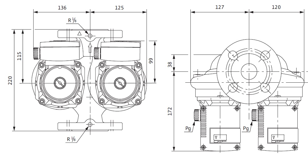 Здвоєний насос може працювати в режимі «основний/резервний» і в режимі паралельної роботи двох насосів