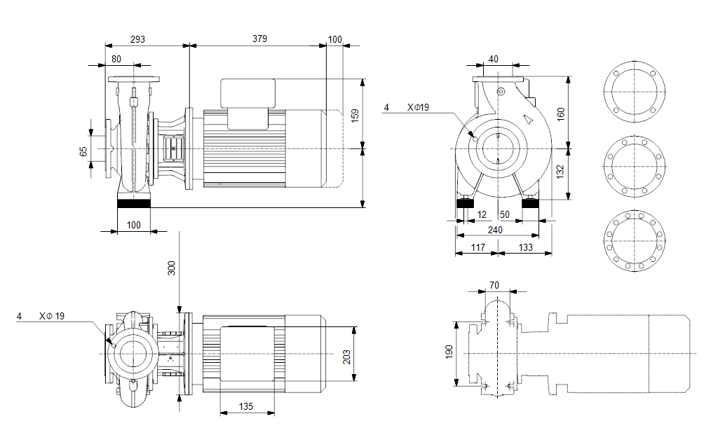 Консольно-моноблочний насос NB є нормальновсмоктуючий, одноступінчатий, відцентровий спіральний насос з осьовим всмоктувальним патрубком, радіальним напірним патрубком і горизонтальним валом. NB включає в себе насоси з короткою муфтою з розмірами, відповідними стандарту або EN733, або ISO2858.