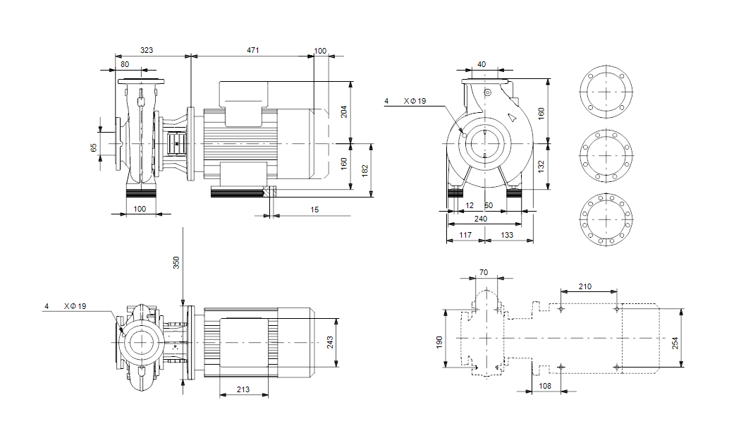 Консольно-моноблочний насос NB є нормальновсмоктуючий, одноступінчатий, відцентровий спіральний насос з осьовим всмоктувальним патрубком, радіальним напірним патрубком і горизонтальним валом. NB включає в себе насоси з короткою муфтою з розмірами, відповідними стандарту або EN733, або ISO2858.