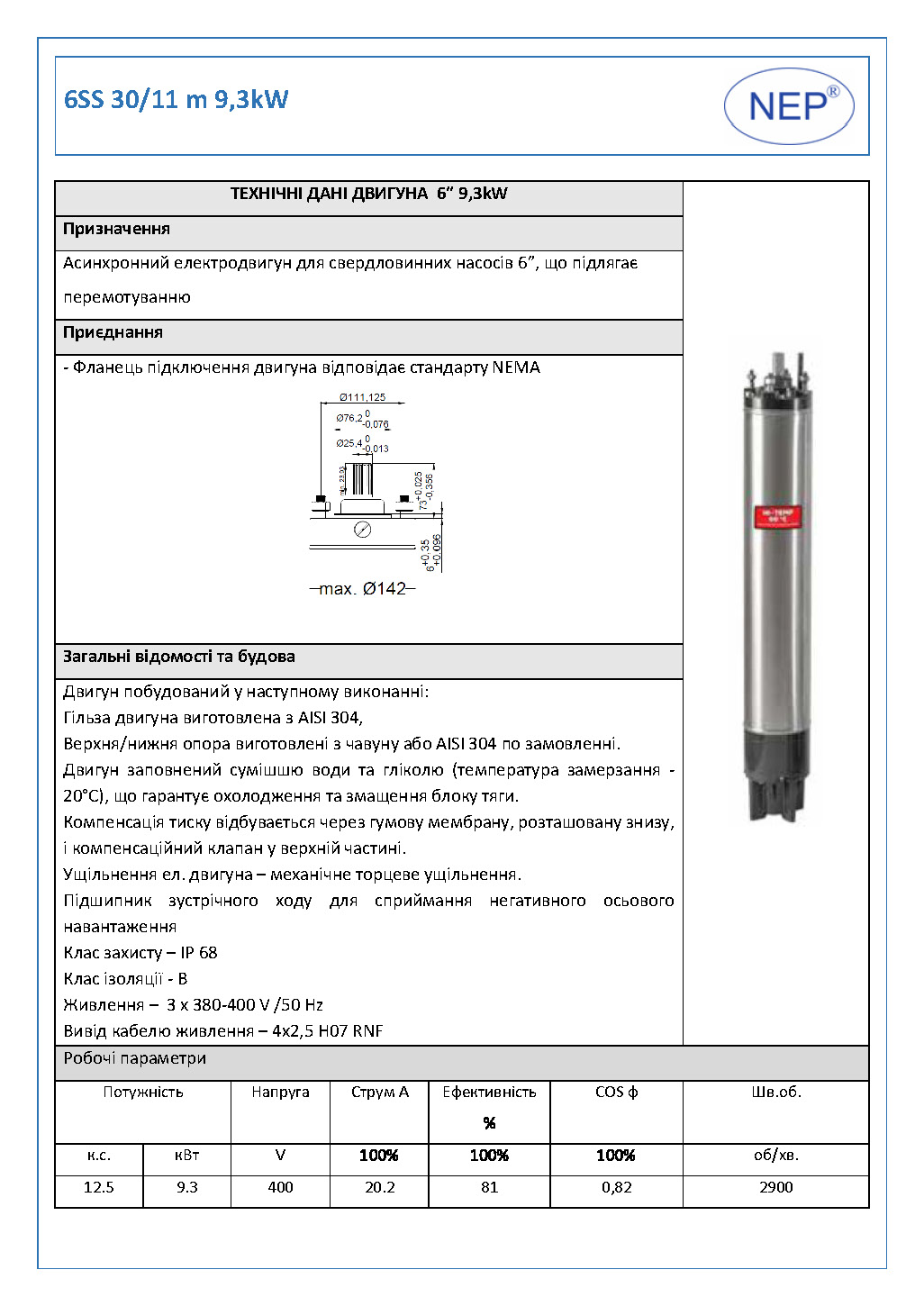 Модель: 6SS 30-11 m 9.3kW