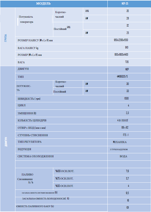 - 4 цикли, з водяним охолодженням, турбонаддувом і повітряно-повітряним охолодженням