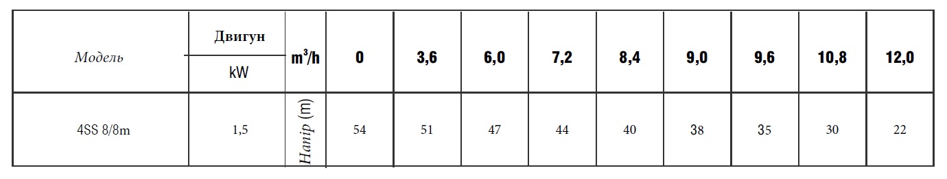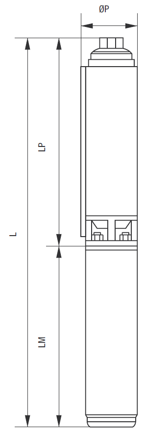 Глибинний багатоступінчастий відцентровий насос для свердловин діаметром 4 дюйми. Зворотний клапан, вбудований у нагнітальний патрубок. Фланець насоса для з'єднання з двигуном виготовлений відповідно до стандартів NEMA. Найбільш поширеними сферами застосування є цивільні та сільськогосподарські.