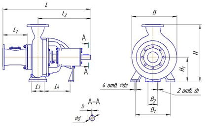 – чавунний корпус зі стандартним фланцевим вхідним і вихідним отвором;