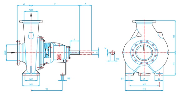 Корпус насоса являє собою чавунну відливку, в якій виконані вхід в насос і вихідний патрубок, спірально-кільцевий канал відведення та опорні лапи. Вхід в насос розташований по осі обертання, вихідний патрубок спрямований вертикально вгору і розташований в одній площині з віссю обертання робочого колеса.