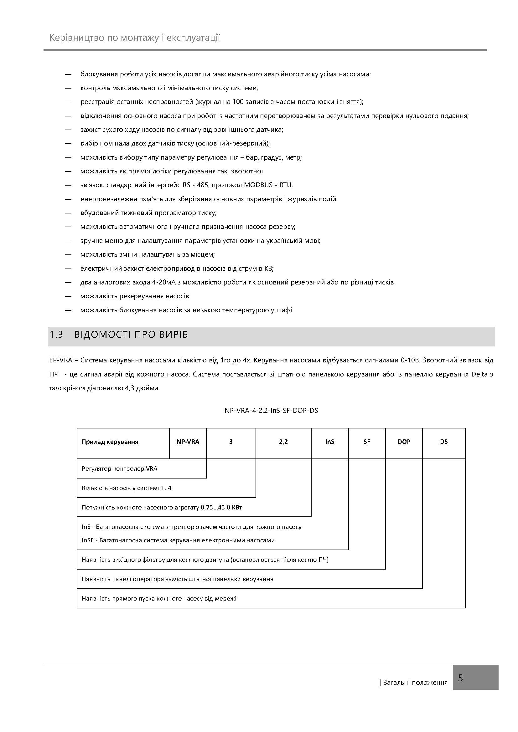 Прилад автоматичного управління насосами підвищення тиску NP-VRA-SYSTEM 0,75…110,0