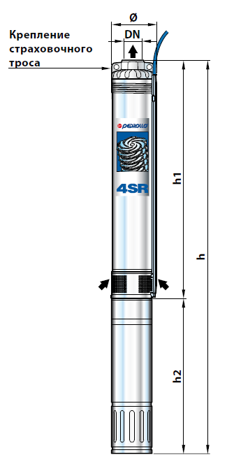 Застосування:  Глибинний електронасос 4SR підходить для перекачування чистої води з 4-х дюймових свердловин, містить не більше 150 г/м³ піску. Завдяки високій ефективності та надійності цей насос підходить для перекачування води в побуті, комунальному господарстві, у промисловості, для автоматичної подачі води спільно з автоматичними агрегатами підтримки тиску, для зрошення, для мийного обладнання, для збільшення напору і в системах протипожежної безпеки і т. д.