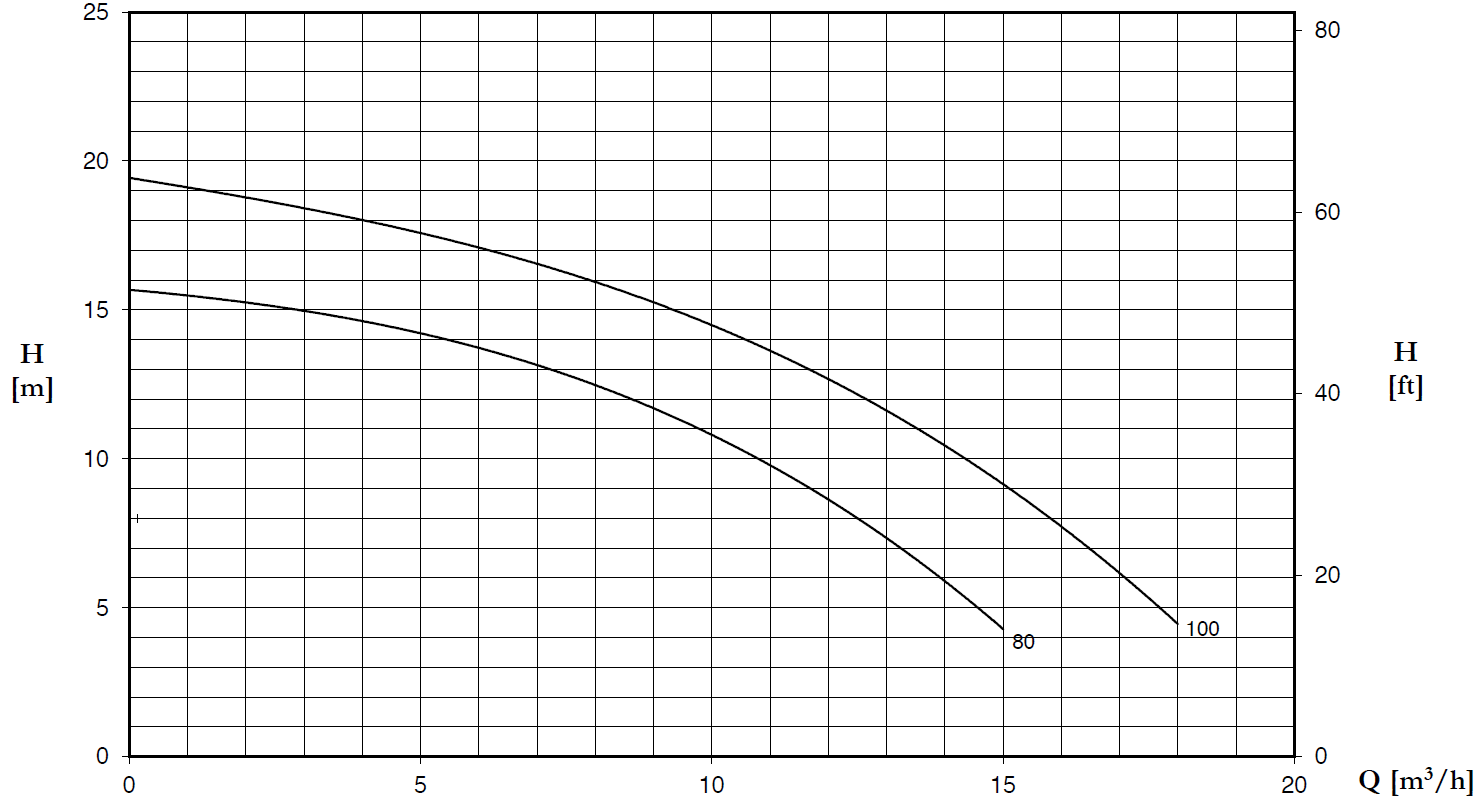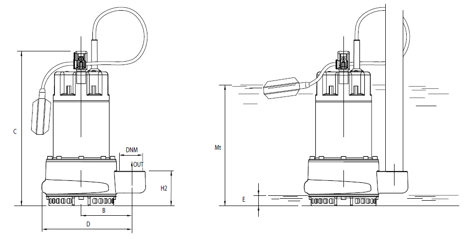 DH – Дренажний насос з відкритим робочим колесом для перекачування рідин із завислими твердими частинками. Характеризується значною висотою напору по відношенню до типом і розміром насоса.