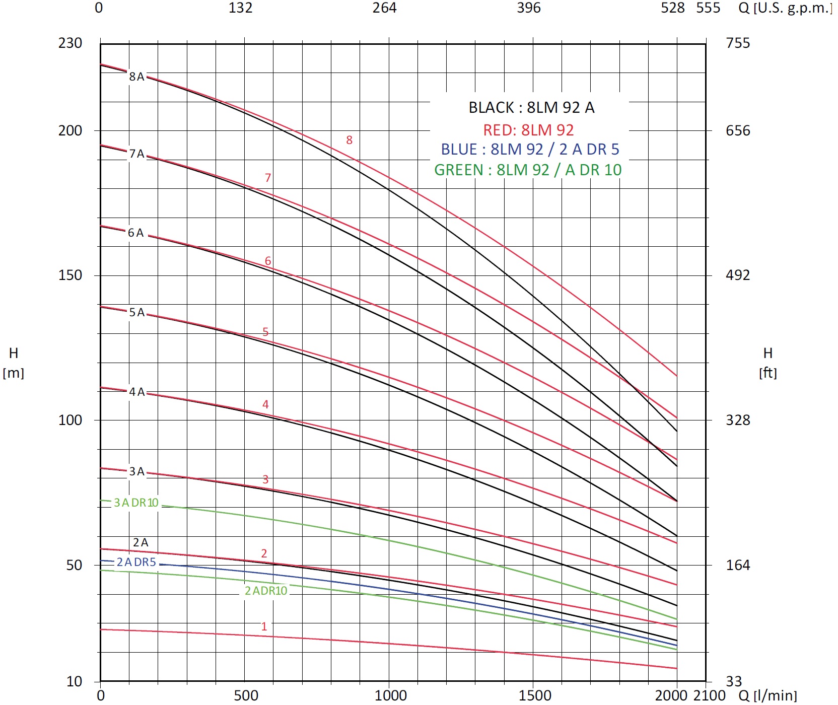 8LMS – багатоступінчастий насос Глибинний, для скважен на 8”. Вбудований зворотний клапан в напірному патрубку. Фланець насоса для з'єднання з двигуном виконаний у відповідності зі стандартами NEMA. Найчастіше застосовується у цивільних і сільськогосподарських системах.