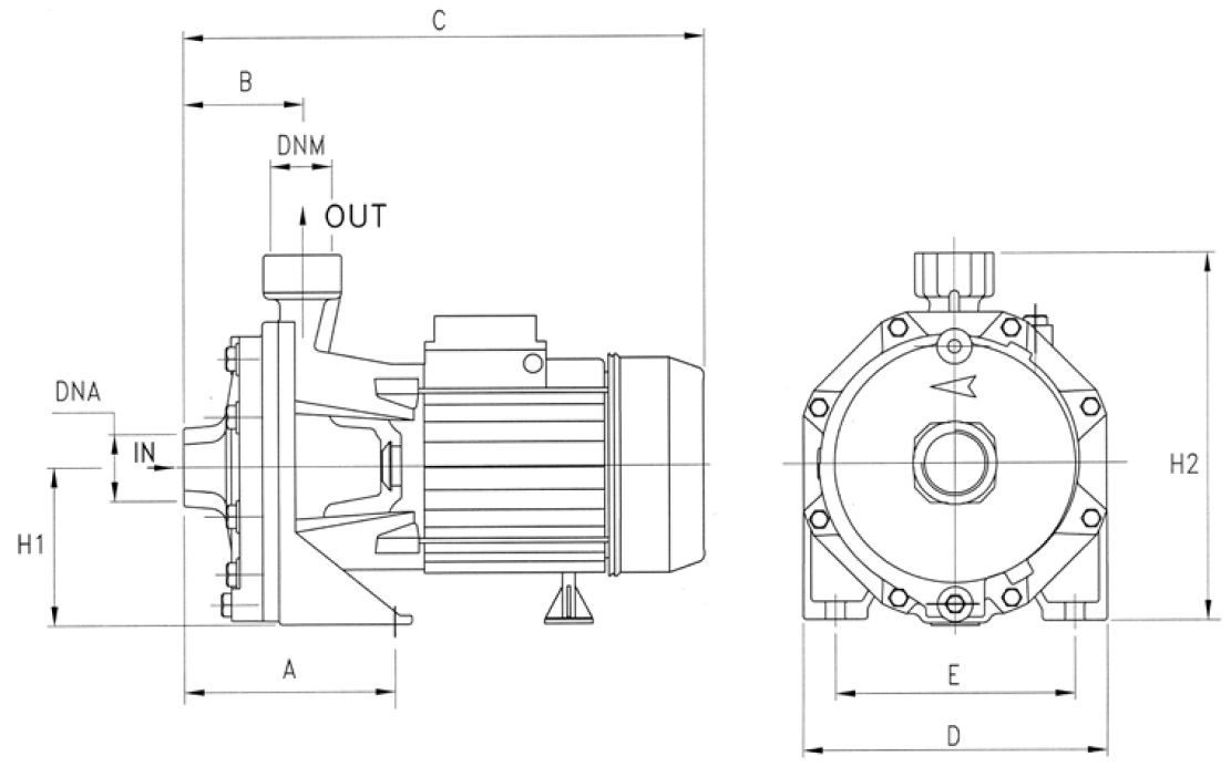 CB – Відцентровий насос з двома робочими колесами для цивільних і промислових систем підвищеного тиску, два назад позиціонуються робочих колеса забезпечують високий напір при гарній продуктивності.