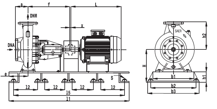 Робочі характеристики: Насоси серії NCBK можуть працювати в горизонтальному і вертикальному положенні – при цьому двигун знаходиться у верхній частині (потрібно узгоджувати з технічним відділом заводу-виробника). Параметри відображені на шильдику насоса і в каталозі отримані при випробуванні з водою густиною 1000 кг/куб. м при висоті всмоктування 1,5 м. При збільшенні висоти всмоктування, максимум до 6 м, необхідно коригувати величину напору. Усмоктувальна магістраль повинна мати наступні розміри: