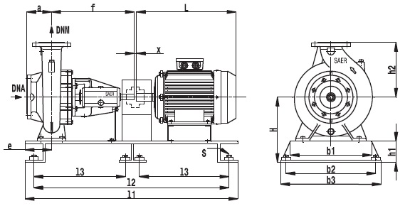 • Насосна частина за розмірами і гідравлічної потужності відповідає нормам EN 733.