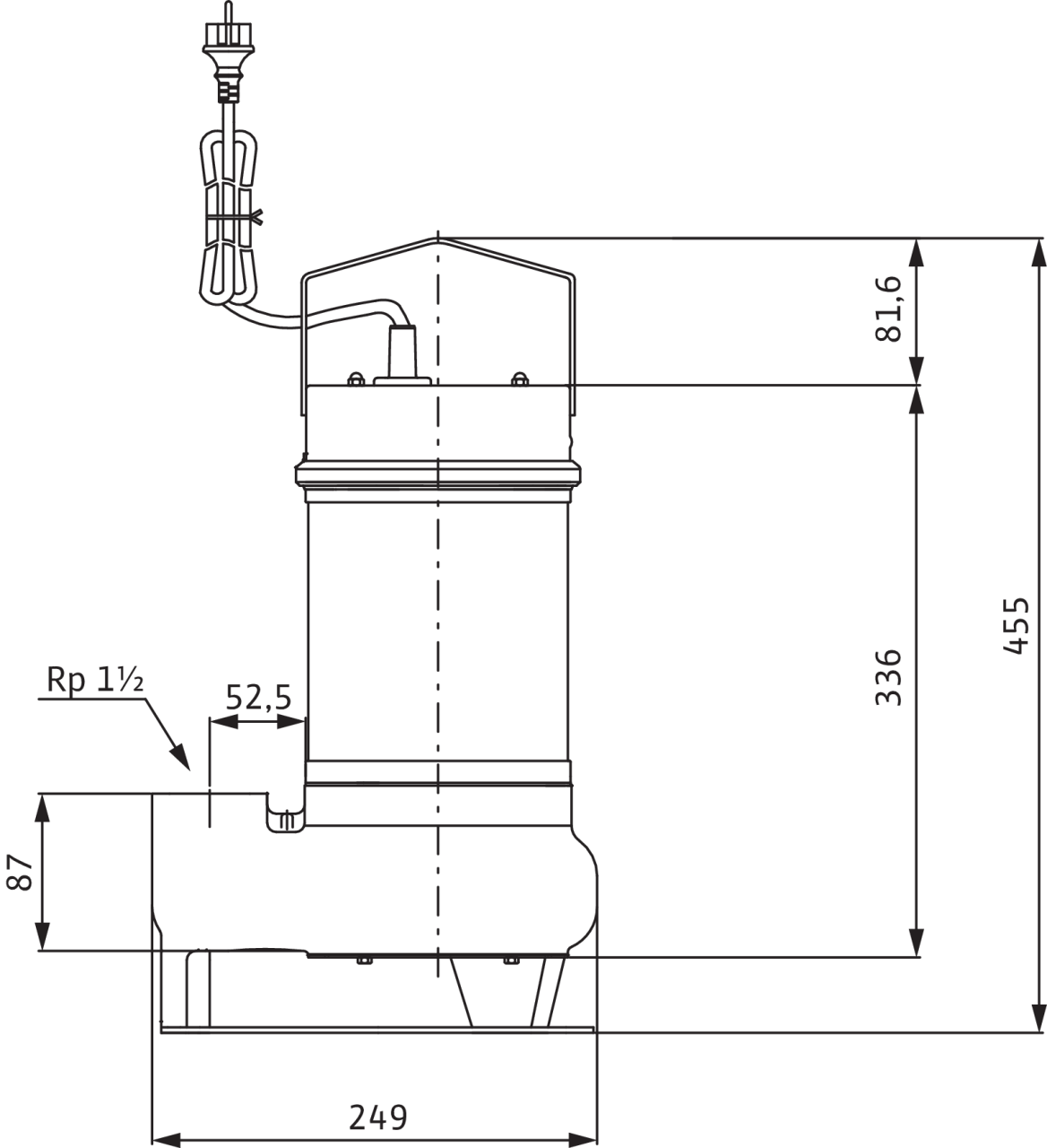 Однофазні двигуни оснащені штекером із захисним контактом, а у виконанні A – поплавковим вимикачем. Двигуни трифазного струму оснащені вільними кінцями кабелю.