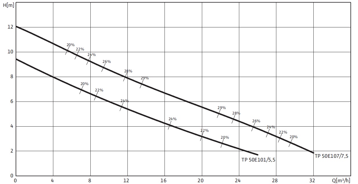 Гідравліка: Спуск з напірної сторони виконаний у вигляді горизонтального фланцевого з'єднання DN 50 або DN 65. В якості форм робочого колеса застосовуються одноканальне (E) або вільнопротічне робоче колесо (F).