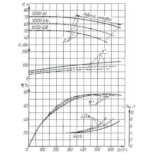 Насоси типу Д, 1Д - одноступінчасті, з двостороннім полуспиральним підведенням рідини до робочого колеса і спіральним відведенням. Корпус насоса має роз'єм в горизонтальній площині. У нижній частині корпусу розташовані всмоктуючий і напірний патрубки, дозволяє розбирати насос для заміни деталей ротора без від'єднання від трубопроводу і демонтажу двигуна. Насоси Д призначені для перекачування води та інших рідин, подібних за хімічною активністю, температурою 0 ... + 85 ° С, в'язкістю до 36х10-6 м2 / с. Можливо вміст твердих включень до 0,05% за масою і розміром до 0,2 мм