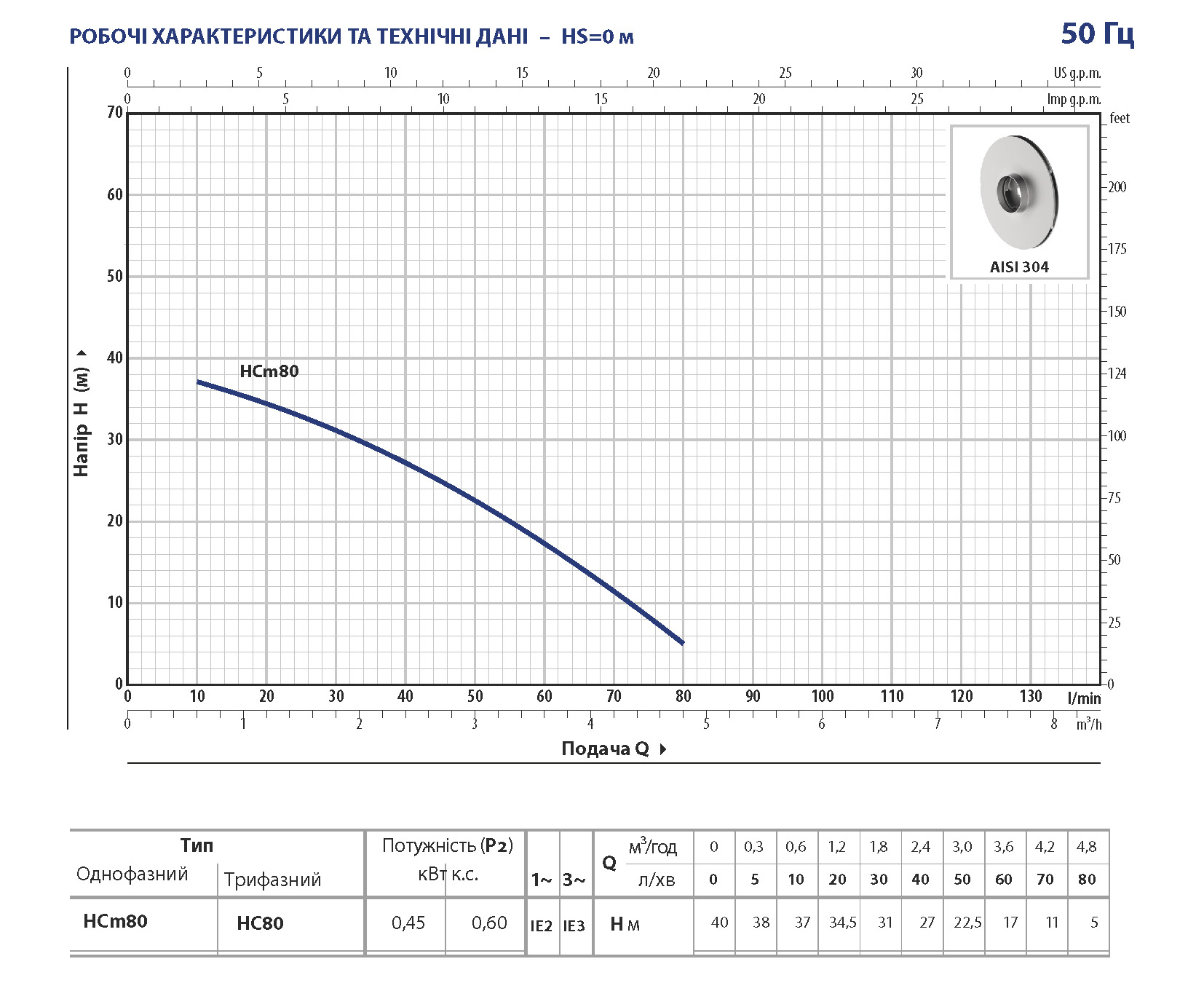 Насос відцентровий багатоступінчастий HCm80– малошумний відцентровий насос. Насоси серії HCm80 широко використовуються для поливу і зрошення, в складі автоматичних насосних станцій для водопостачання і підтримки тиску.
