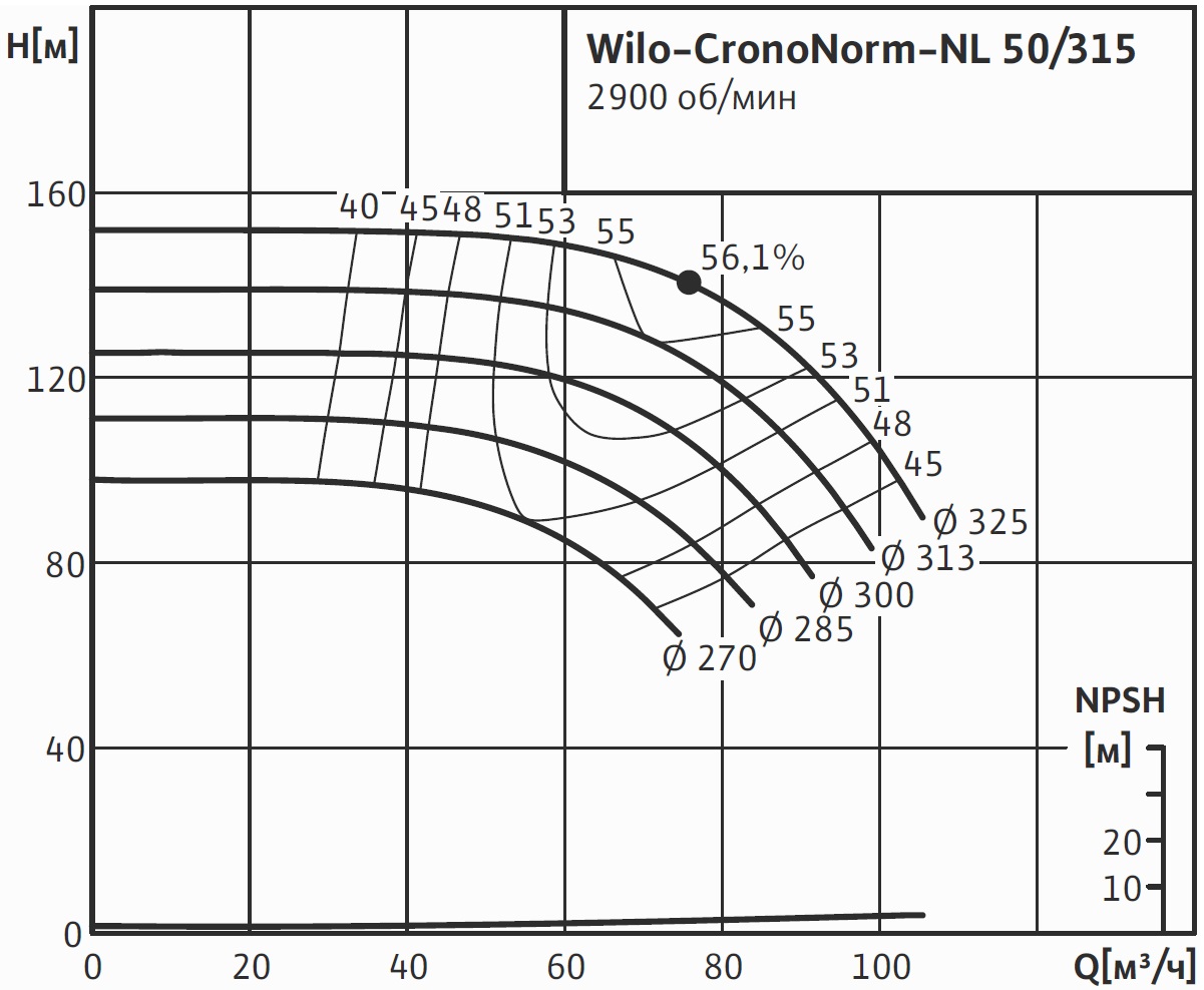 Wilo-CronoNorm NL - призначений для перекачування чистої або злегка забрудненої води (макс. 20 ppm), без твердих включень в системах циркуляції, водопостачання і підвищення тиску. Одноступеневий відцентровий насос низького тиску з осьовим всмоктуванням, встановлений на опорній рамі. Також повсюдно застосовуються в многонасосных станціях пожежогасіння і особливо в багатоповерхових будинках для підтримки постійного тиску в трубопроводах