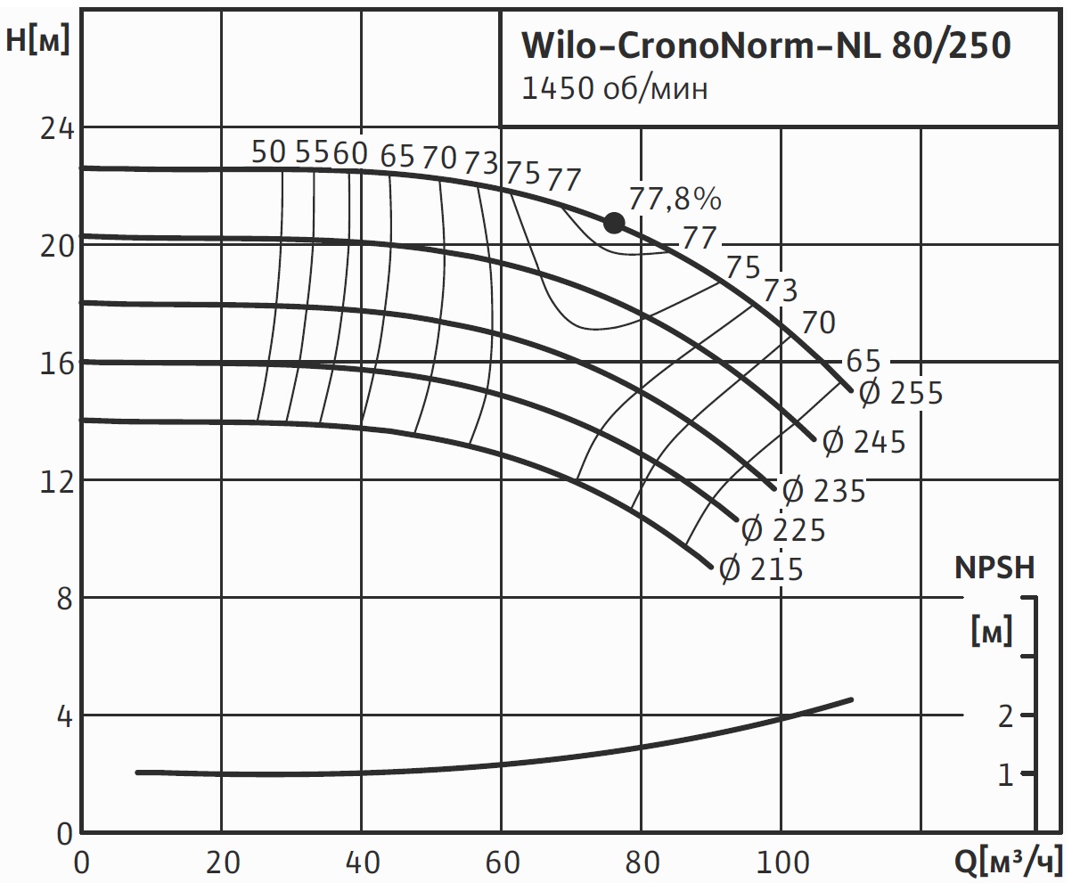 Wilo-CronoNorm NL - призначений для перекачування чистої або злегка забрудненої води (макс. 20 ppm), без твердих включень в системах циркуляції, водопостачання і підвищення тиску. Одноступеневий відцентровий насос низького тиску з осьовим всмоктуванням, встановлений на опорній рамі. Також повсюдно застосовуються в многонасосных станціях пожежогасіння і особливо в багатоповерхових будинках для підтримки постійного тиску в трубопроводах