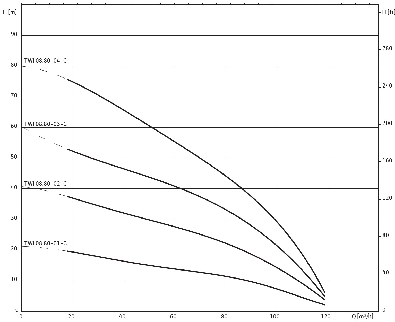 Wilo-Sub TWI 8 - .. - C – Глибинний багатоступінчастий насос 8" з радіальними або напіваксіальними робочими колесами для вертикального або горизонтального монтажу. Вбудований зворотний клапан. Всі деталі, що контактують з перекачуваним середовищем, виготовлені з корозійностійкого матеріалу.