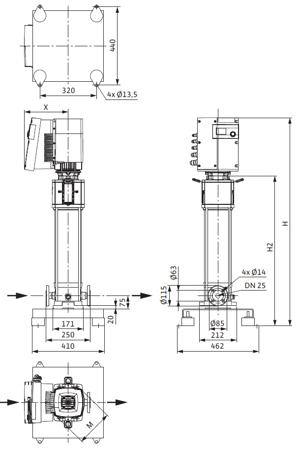 Вертикальний багатоступінчастий насос Helix EXCEL 216-2 / 25 / V / KS