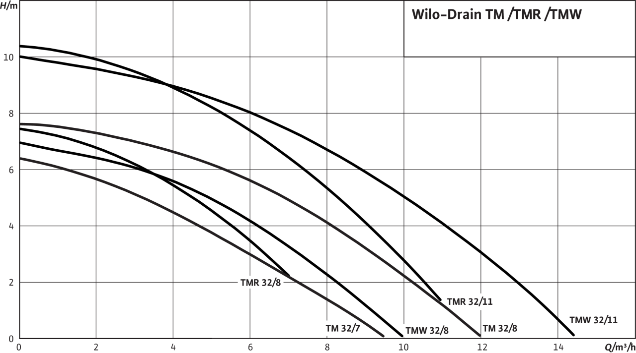 Wilo-Drain TM/TMW/TMR 32 - заглибний дренажний насос використовуються там, де зливові, дренажні води від житлових будинків і технічних споруд або невеликих земельних ділянок, дощова вода з дахів промислово-господарських корпусів і котеджів не можуть бути відведені самопливом без використання насоса.