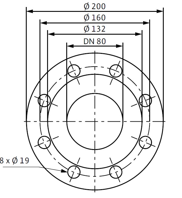 • Стандартне виконання для насосів DN 80: фланець PN 6 (розрахований для PN16 згідно EN 1092-2) для відповідного фланцю PN 6;