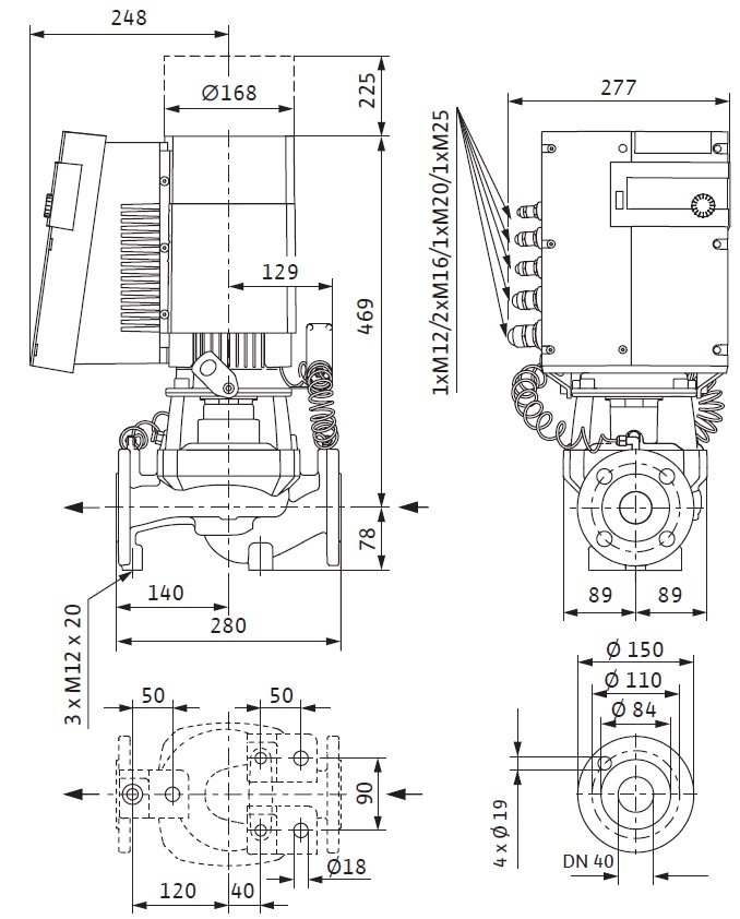 Wilo-Stratos GIGA - Високоефективний Inline насос з електронно-двигун двигуном та електронним регулюванням частоти обертання з сухим ротором. Виконання як одноступеневий відцентровий насос низького тиску з фланцевим приєднанням ковзним торцевим ущільненням. За допомогою частотного перетворювача вдається досягати постійних гідравлічних параметрів насоса в залежності від умов споживання рідини в кожен момент часу.