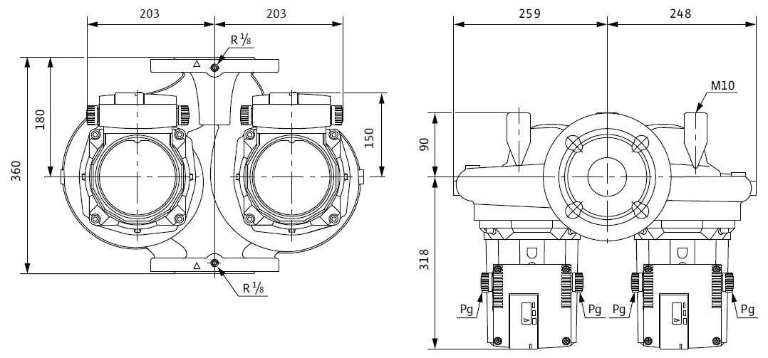 Здвоєний насос може працювати в режимі «основний/резервний» і в режимі паралельної роботи двох насосів