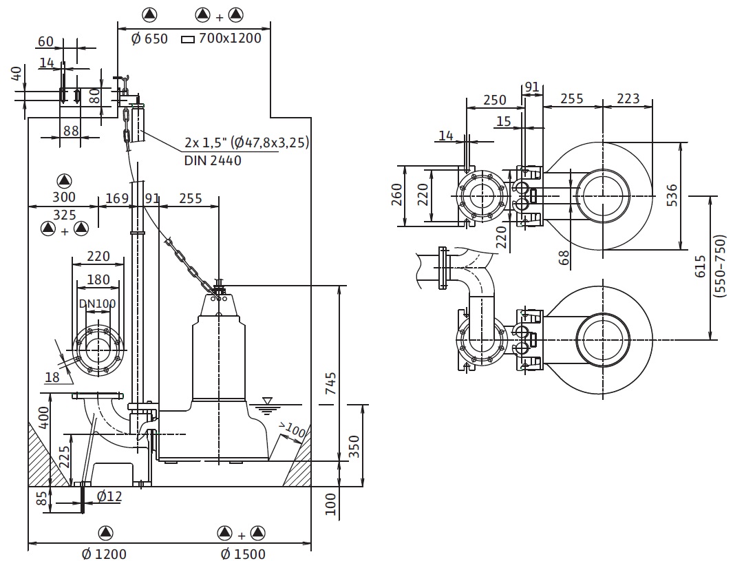 Гідравліка: Горизонтальний напірний патрубок для фланцевого під'єднання DN 80 DN 100. Застосовується робоче колесо одноканальне.