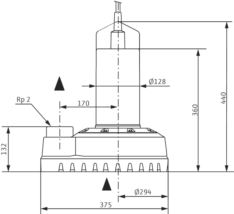 Насос обладнаний поплавком рівня, тип А, що дозволяє вчасно зупинити двигун при зниженні рівня рідини до критичного. При стаціонарній установці поплавці під'єднуються через пульт керування і захисту.