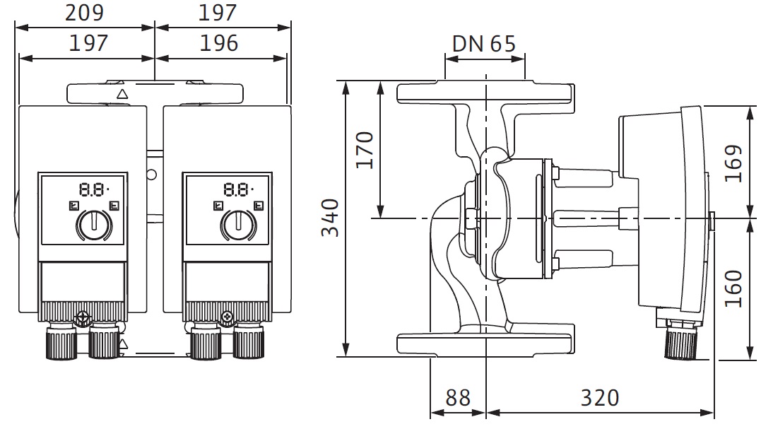 Wilo-Yonos MAXO-D - Циркуляційний насос з мокрим ротором, з фланцевим з'єднанням, електронно-двигун електродвигуном з автоматичним регулюванням потужності. Два електродвигуна на одній насосної частини дозволяють працювати в алгоритмі робочий – резервний, і робітник-піковий, коли додаткова щабель підключається при нестачі однієї. При виході з ладу одного електродвигуна з різних причин, робота триває на другому, поки перший знаходиться на ремонті.