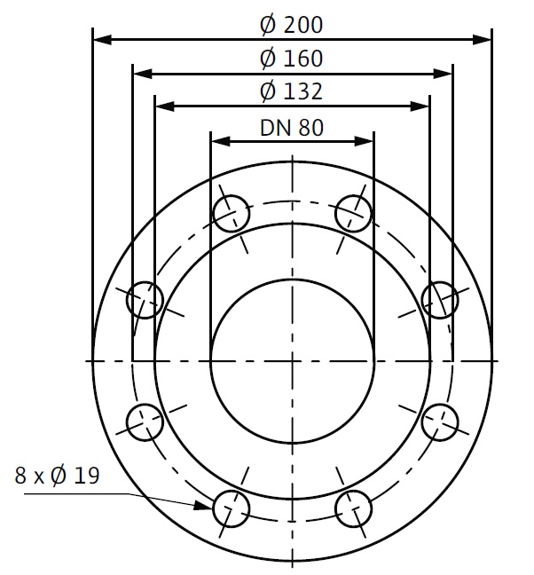 • Стандартне виконання для насосів DN 80 / DN 100: фланець PN 6 (розроблений PN 16 згідно EN 1092-2) для відповідного фланцю PN 6.