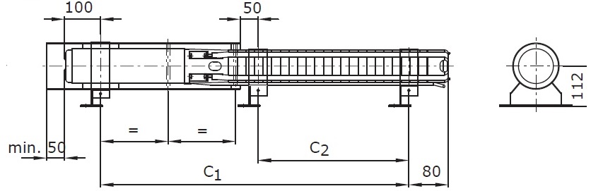 габаритний креслення. D - Горизонтальний з охолоджуючим кожухом