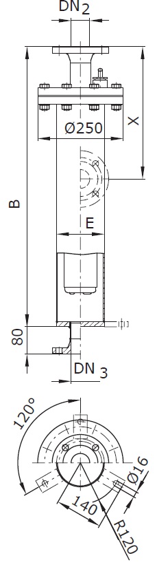 габаритне креслення. A – Вертикальний     габаритне креслення. B – Вертикальний з охолоджуючим кожухом     габаритне креслення. E - Вертикальний з напір. кожухом