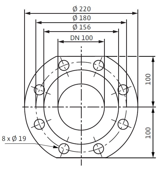 • Стандартне виконання для насосів DN 80 / DN 100: фланець PN 6 (розроблений PN 16 згідно EN 1092-2) для відповідного фланцю PN 6.
